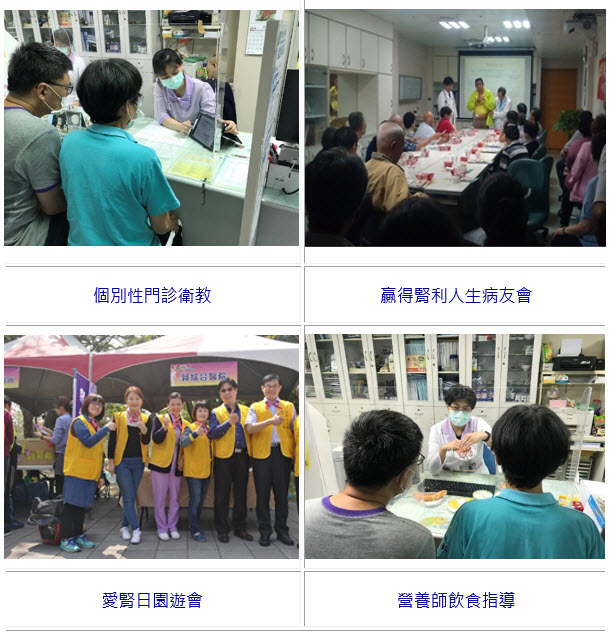為降低台灣慢性腎臟病之發生率及盛行率,本院於96年1月起參與末期腎臟病 (pre-ESRD)照護計劃, 成為國民健康局「腎臟病健康促進機構」,100年1月再加入初期腎臟病(PCKD)照護計劃, 同時擴大腎臟病照護族群,提供多元化衛教內容,給予腎臟病患完善追蹤與疾病管理,延緩腎臟疾病進展。